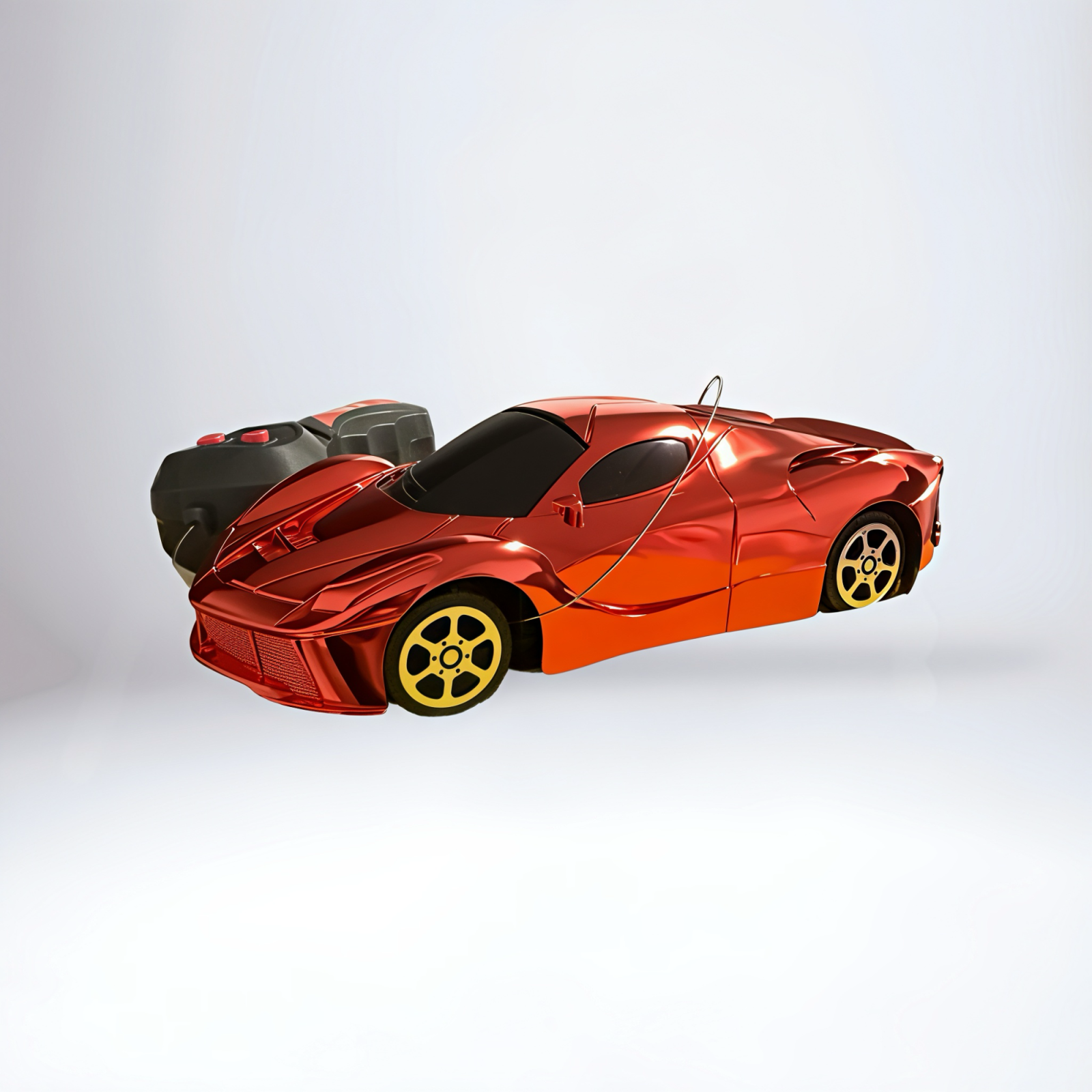 Transformă orice cameră într-o pistă de curse cu această super mașină sport telecomandată, disponibilă în două variante spectaculoase – Red Chrome 🔥 și Gold Chrome ✨. Model realist, suprafață metalizată lucioasă și telecomandă ușor de folosit – combinația perfectă pentru ore de joacă fără limite!