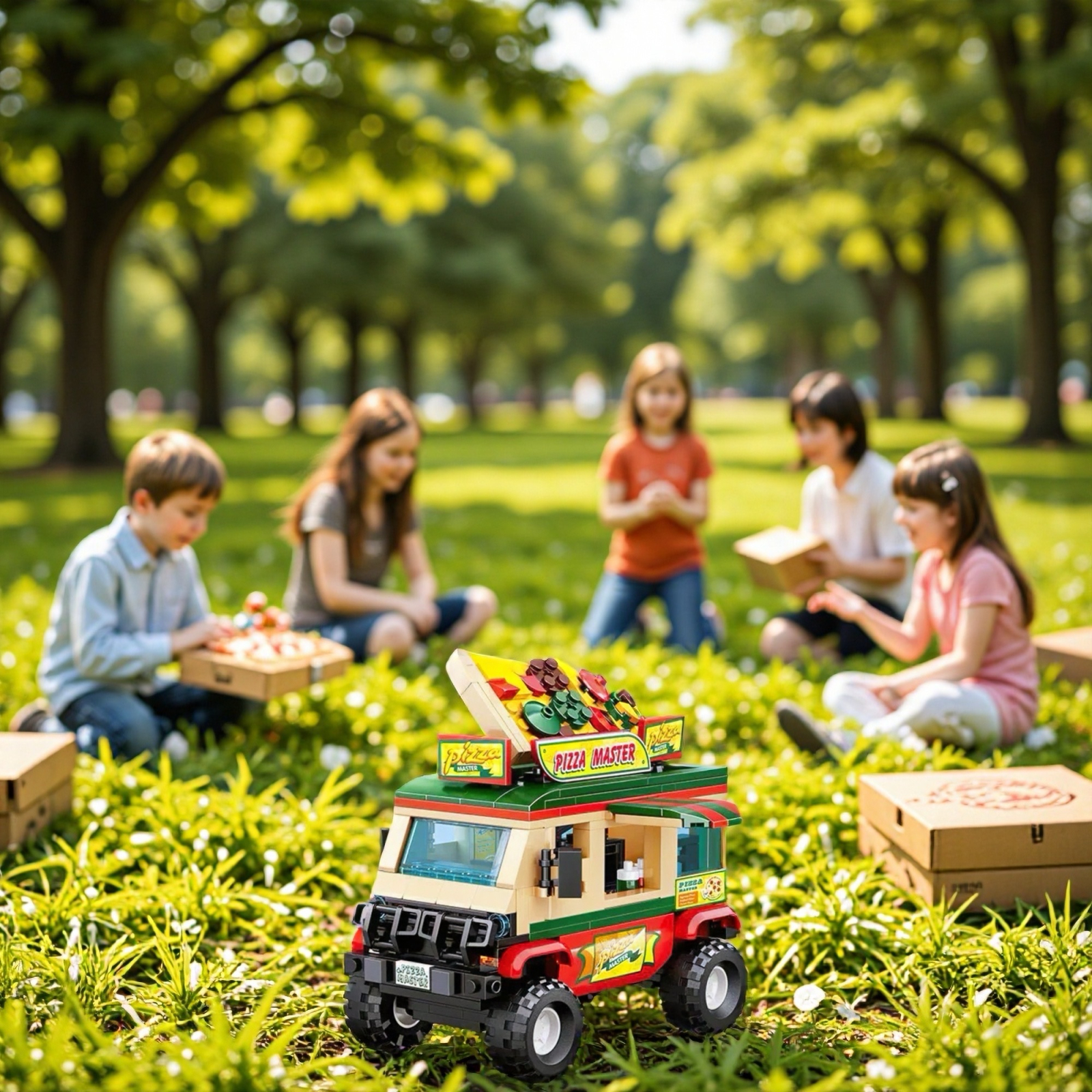 Setul de construcție Pizza Master pentru copii este o jucărie creativă care le permite celor mici să construiască propriul restaurant mobil de pizza. Cu ajutorul pieselor incluse, copiii pot asambla vehiculul și diferite elemente ale restaurantului, creând un mic univers de joacă plin de imaginație.
